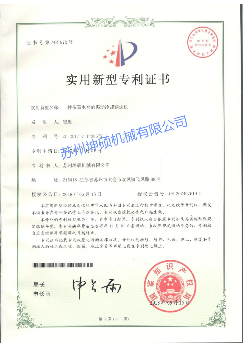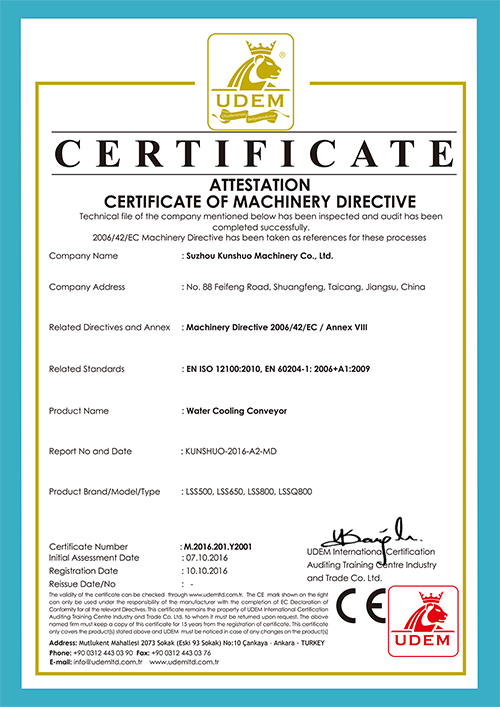 水冷式冷卻輸送機(jī)CE證書(shū)